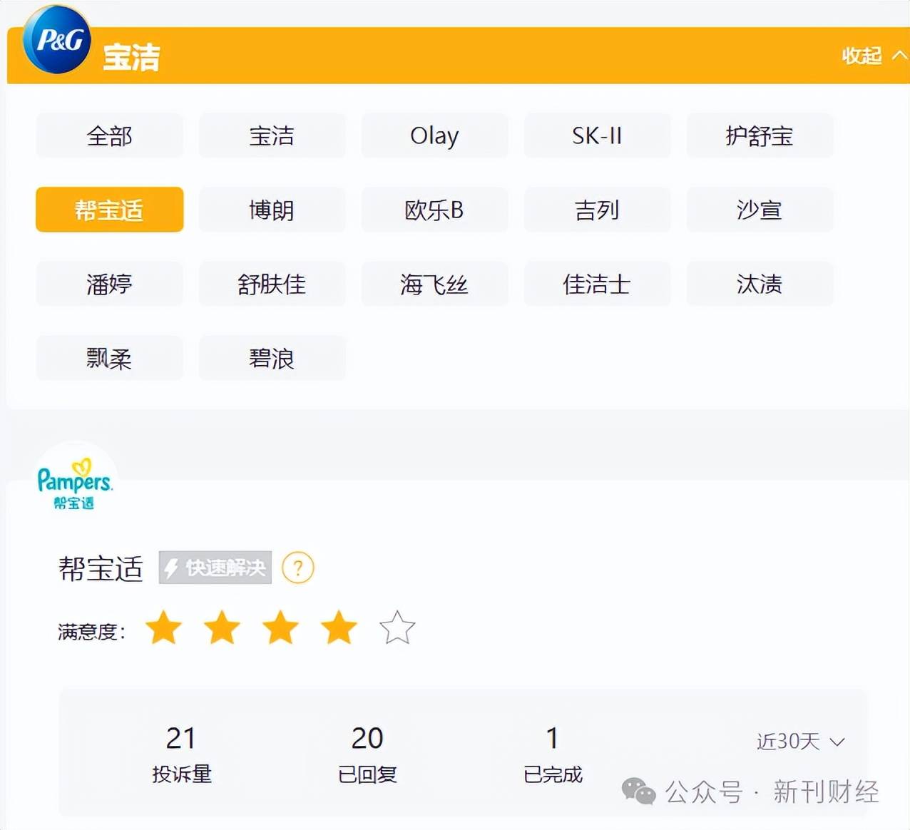 近期投诉激增,高于宝洁公司其他品牌