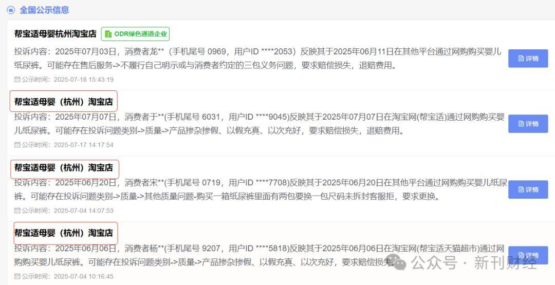 据天眼查信息,帮宝适母婴(杭州)淘宝店注册于2018年,注册地址位于浙江省杭州市,企业性质为零售业经营主体。值得注意的是,该企业在工商登记信息中存在多项信息披露不完善的情况,包括未公示注册资本、联系方式、股权结构及管理层信息等关键内容,显示其经营规模相对有限。而作为帮宝适品牌权利主体的宝洁公司,在现有公开投诉信息中尚未显示与这些产品质量问题存在直接关联。这种经营主体与品牌权利方分离的架构,可能对消费者维权及问题溯源造成一定困难。