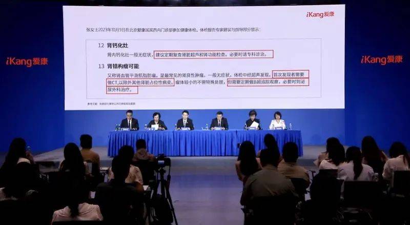 在30日的媒体沟通会上,爱康集团体检超声专业组组长黄英对2023年10月张女士的超声报告进行解读,称超声检查结果显示右肾钙化灶,左肾错构瘤可能。她称,张女士对外声称的2023年的超声检查描述“右肾钙化灶、有低回声”属于编造,与其实际的超声报告不符。只要张女士提供书面授权,爱康集团可以直接对外公布张女士的超声检查的具体描述。