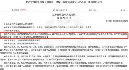 2021年初,中国裁判文书网公布的一份《北京智借网络科技有限公司、贤俊江等侵犯公某个人信息罪一审刑事判决书》显示:被告人贤俊江等人明知公司智借网络没有贷款资质,仍编辑“一键贷”贷款申请页面投放网络,诱骗被害人申请注册,收集被害人个人信息,在未取得被害人授权情况下,通过API接口传输的方式,向下游多家不特定信息服务公司出售包含姓名、身份证号、手机号等信息的个人信息,销售金额共约317万元。