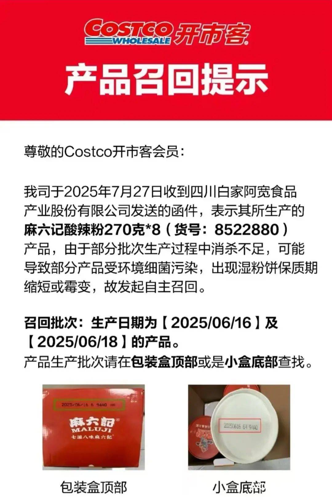 近日,麻六记酸辣粉部分产品受环境细菌污染出现发霉、遭会员制超市Costco(即“开市客”)所有门店下架引发较大关注。