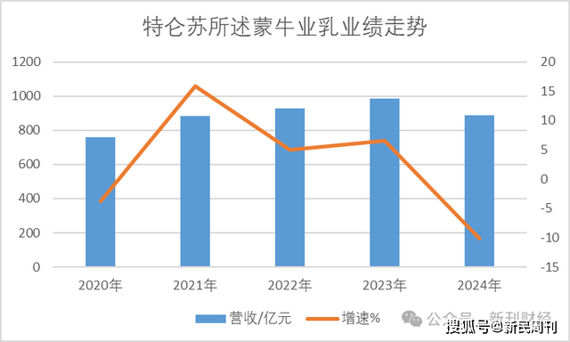 2024年度,蒙牛液态奶业务收入为730.66亿元,占总营收886.7亿元的82.4%,此外公司整体业绩开始出现下滑,其中2024年度相较2023年同期的986.2亿元下降10.97%,而在2021-2023年曾持续保持增长。在蒙牛经营承压的背景下,特仑苏2024年增速已放缓至3.2%。
