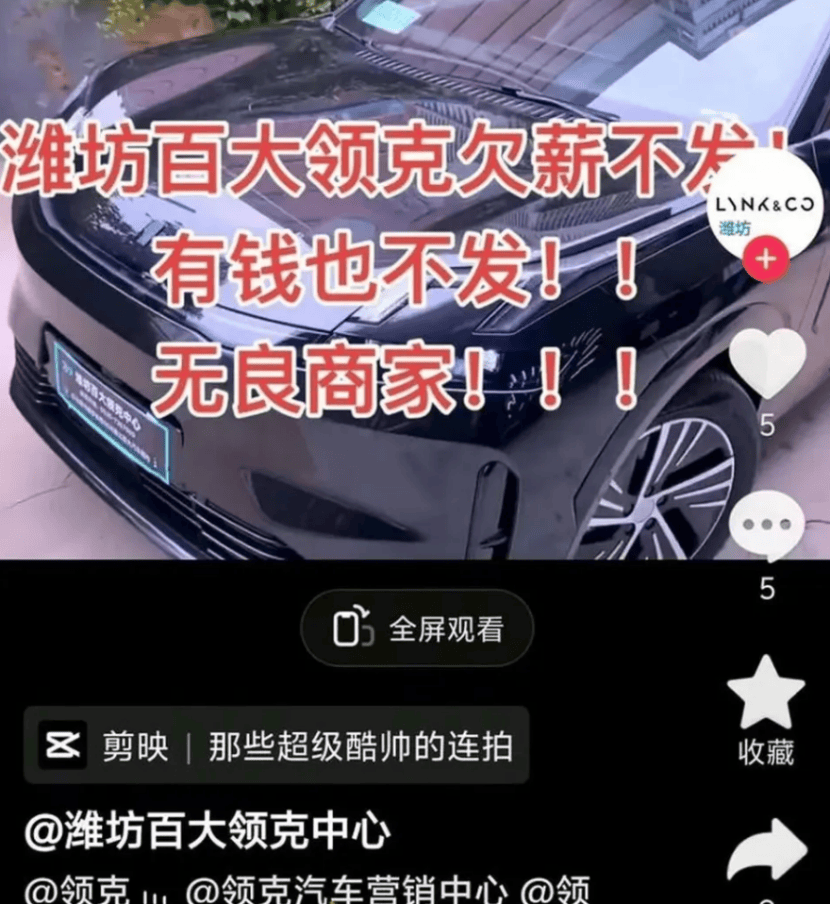 领克门店抖音号现讨薪视频 领克回应称:涉事经销商已退网