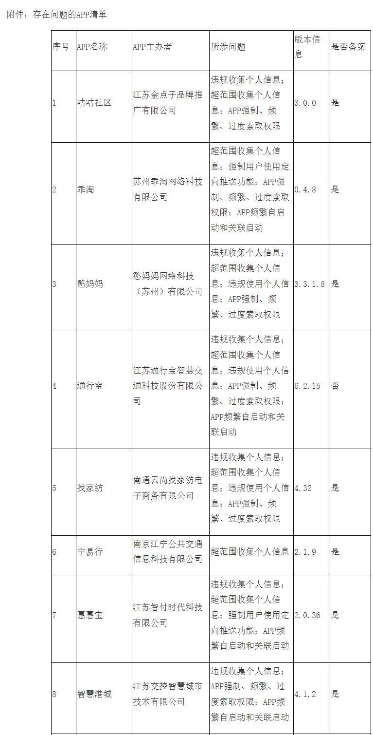 江苏省通信管理局官网内容显示:江苏省通信管理局高度重视用户权益保护工作,依据《个人信息保护法》《网络安全法》《电信条例》《电信和互联网用户个人信息保护规定》等法律法规,持续整治APP侵害用户权益的违规行为。近期,江苏省通信管理局组织第三方检测机构对群众关注的省内生活服务、休闲娱乐、实用工具等类型的APP进行检查,并通报相关违规APP主办者限期整改。