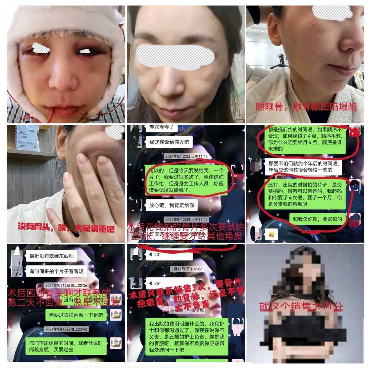 该消费者反映,术后出现了严重的面部塌陷问题,具体表现为眼眶骨和颧骨区域明显塌陷,面部静态纹路加深,整体凹陷感严重,面部轮廓变得异常平坦,甚至感觉“没有骨头”,同时手术疤痕也较为明显。