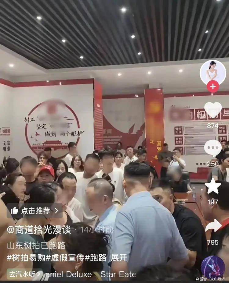 另有当地网友发布视频称,山东临沂树拍易购暴雷,多少人的积蓄血本无归。