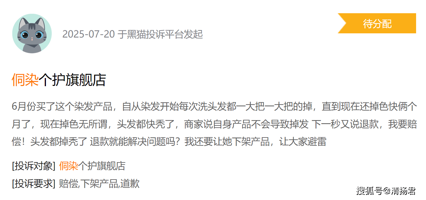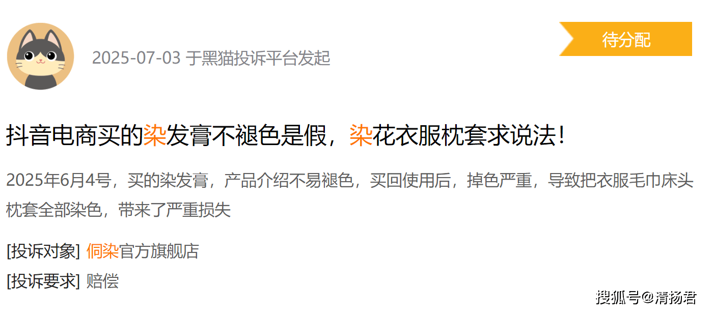 黑猫投诉平台数据也佐证了这一点:侗染染发剂已累积大量投诉,问题集中在过敏、不上色、虚假宣传等。