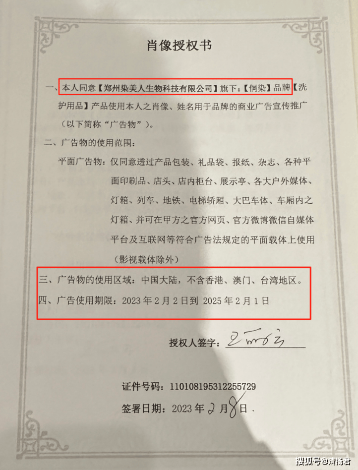 编号110108195312255729的《肖像授权书》载明:王丽云授权许可郑州染美人生物科技有限公司旗下“侗染”品牌洗护产品,使用其肖像、姓名用于品牌的商业广告宣传推广。