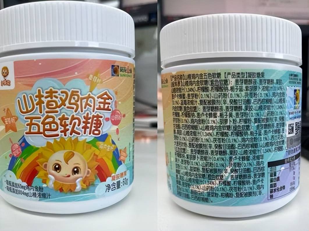 在另一个名为小葵花营养膳食旗舰店的电商直播间里,售卖一款名为小葵花第三代鸡内金山楂茯苓山药五色软糖的产品。直播间背景板上还有宣传语:“不做小饭渣,只做光盘侠。”