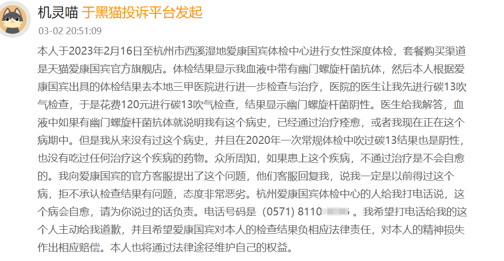 体检10年未做出癌症预警 女律师质疑爱康国宾涉嫌误检、漏检