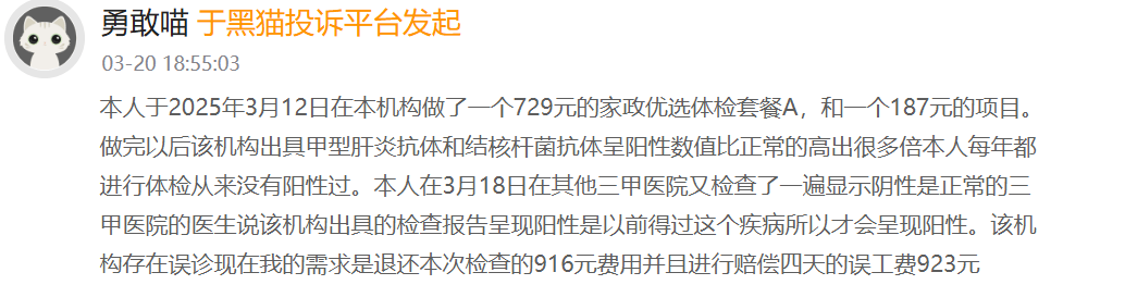 指尖新闻记者发现,1000余条投诉信息中,有多条投诉是针对爱康国宾体检的检测结果不准确。