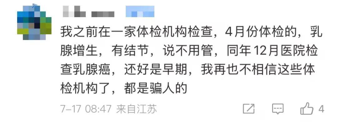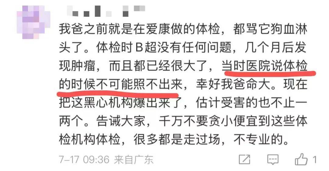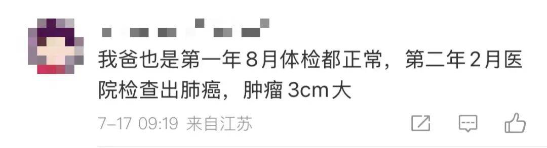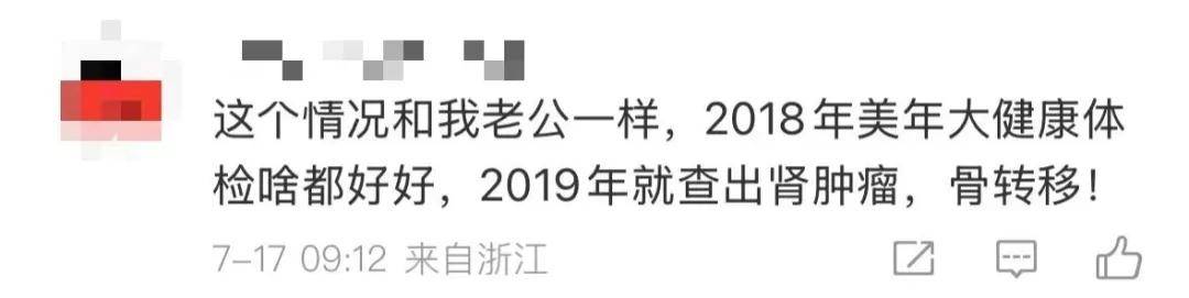 还有人提到父亲体检时B超“无异常”,数月后即发现较大肿瘤,“医院说体检时不可能漏诊”。