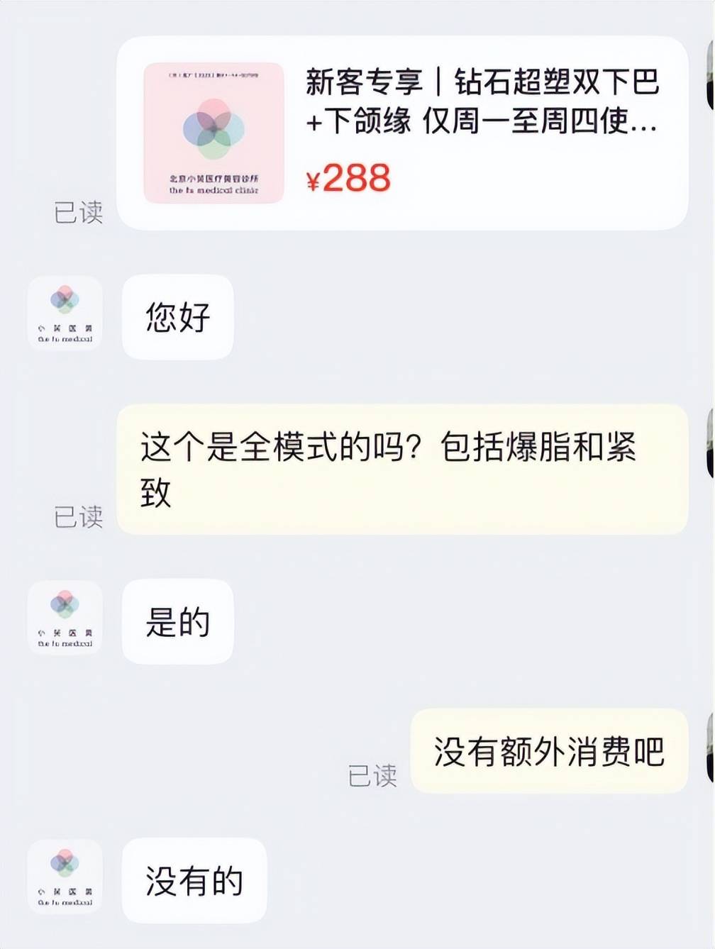 该网友还感慨道,在国家对市场秩序持续强化监管、各行业价格日益透明化的今天,医美领域仍存在如此不规范的操作,实在令人遗憾。为佐证其说法的真实性,该网友在帖文中附上了与客服的沟通记录以及支付凭证截图。