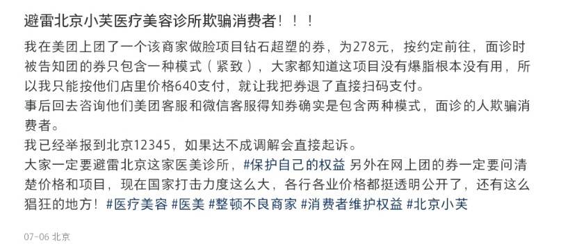 团购“套路”深,老客又心寒?北京小芙医美面临口碑塌方!