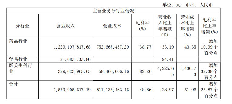 公开资料显示,*ST苏吴的业务板块主要有三个:药品、贸易、医美生科,其中,*ST苏吴医美生科业务板块2024年营收3.3亿元,同比暴增4225.65%,毛利率82.26%,同比增长32.38个百分点。