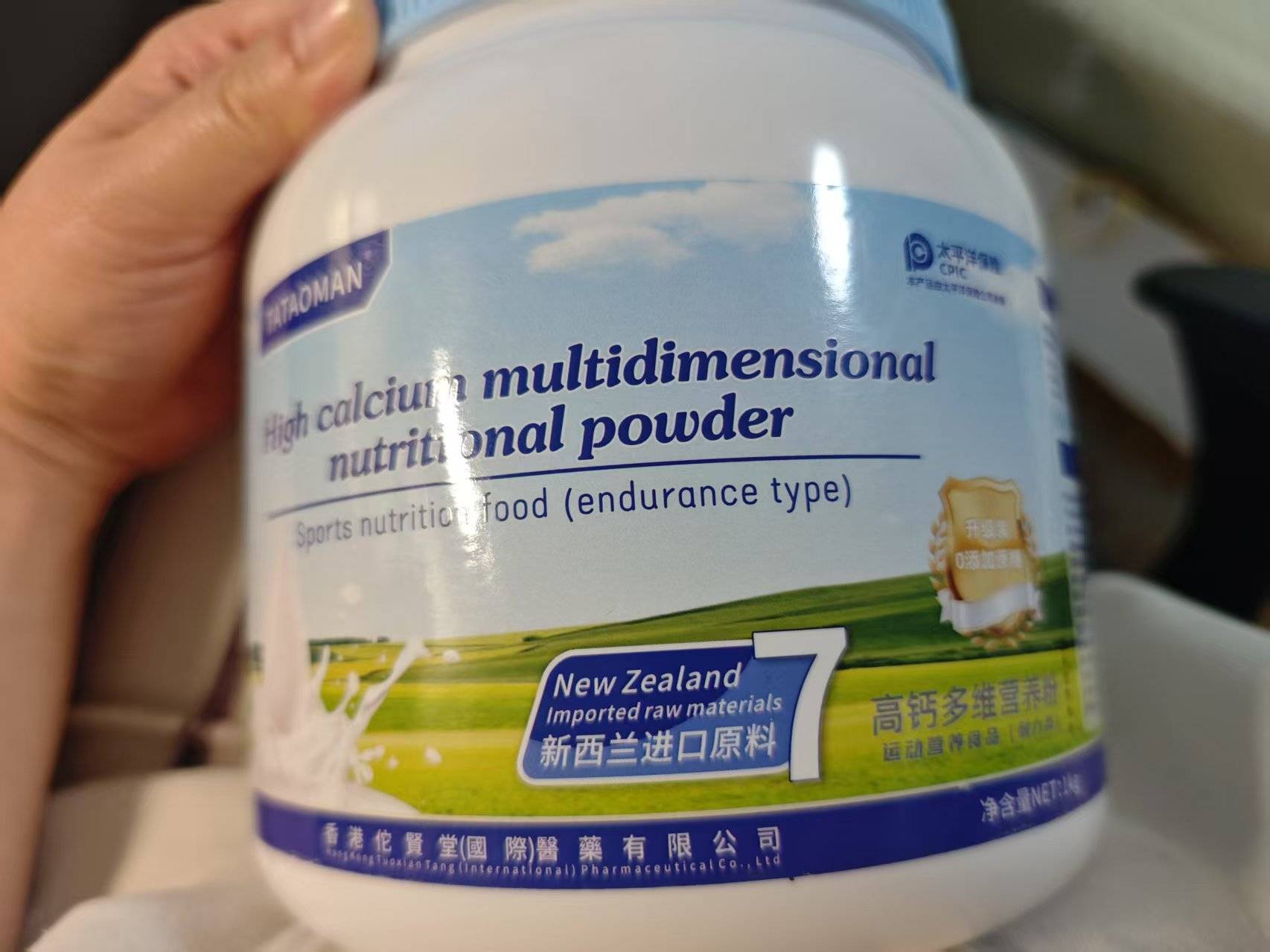 同样被主播说成“新西兰蓝胖子全脂”“澳大利亚蓝胖子脱脂”的“TATAOMAN高钙多维营养粉”,罐身包装主要位置突出英文名称,生产信息也采用中英文混用的标注方式,但实际生产企业标称为“安徽专健中食科技有限公司”,执行的也是国内生产许可证号及食品安全标准,唯一与“进口”有关的信息是全脂乳粉原料来自新西兰。此外,该产品也不是乳粉或调制乳粉,而是耐力类运动营养食品(特殊膳食食品)。