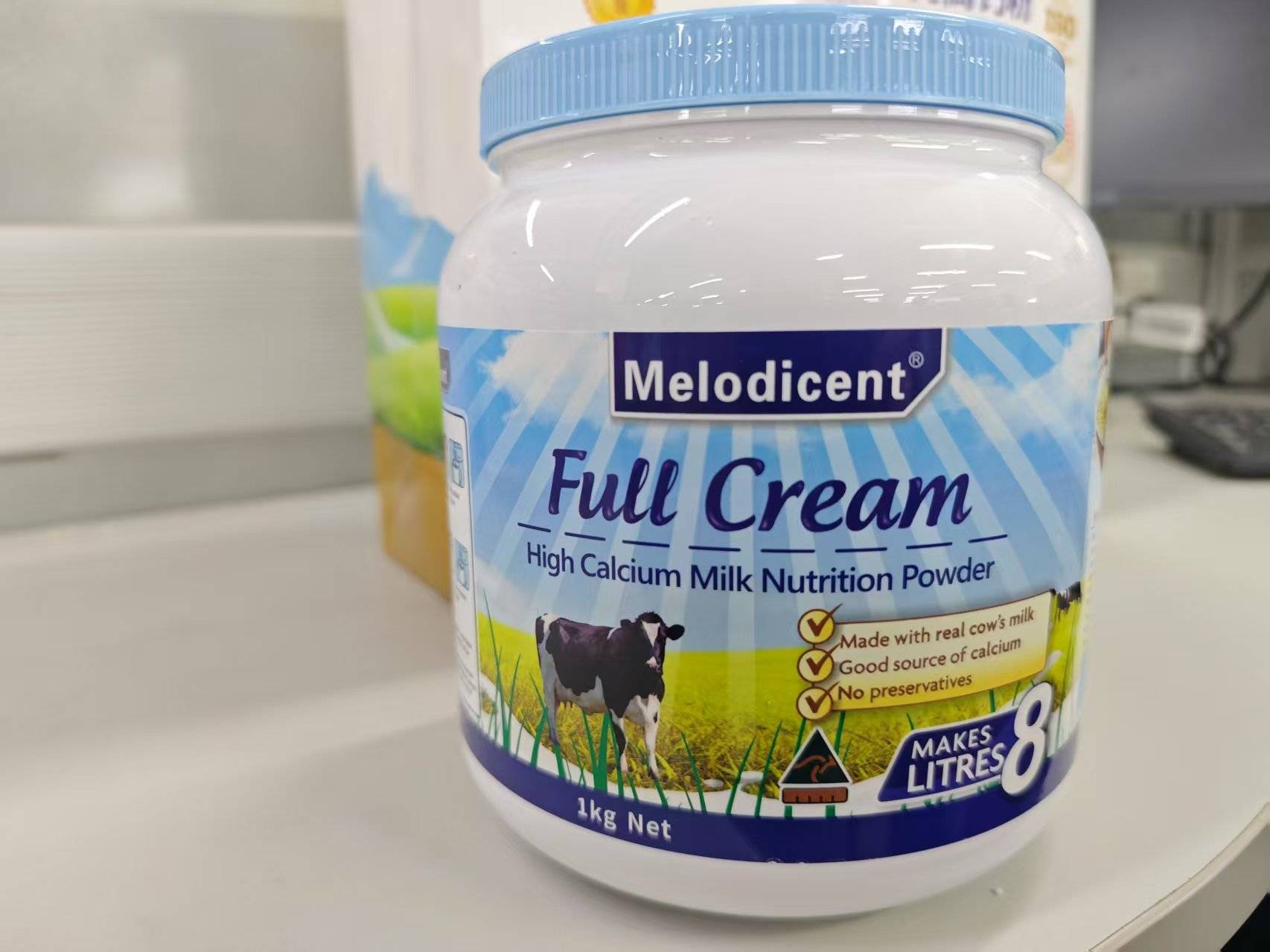 与百香萱“新西兰羊奶初乳高钙粉”相比,一款注册商标为“Melodicent”的全脂高钙牛奶营养粉更具迷惑性。