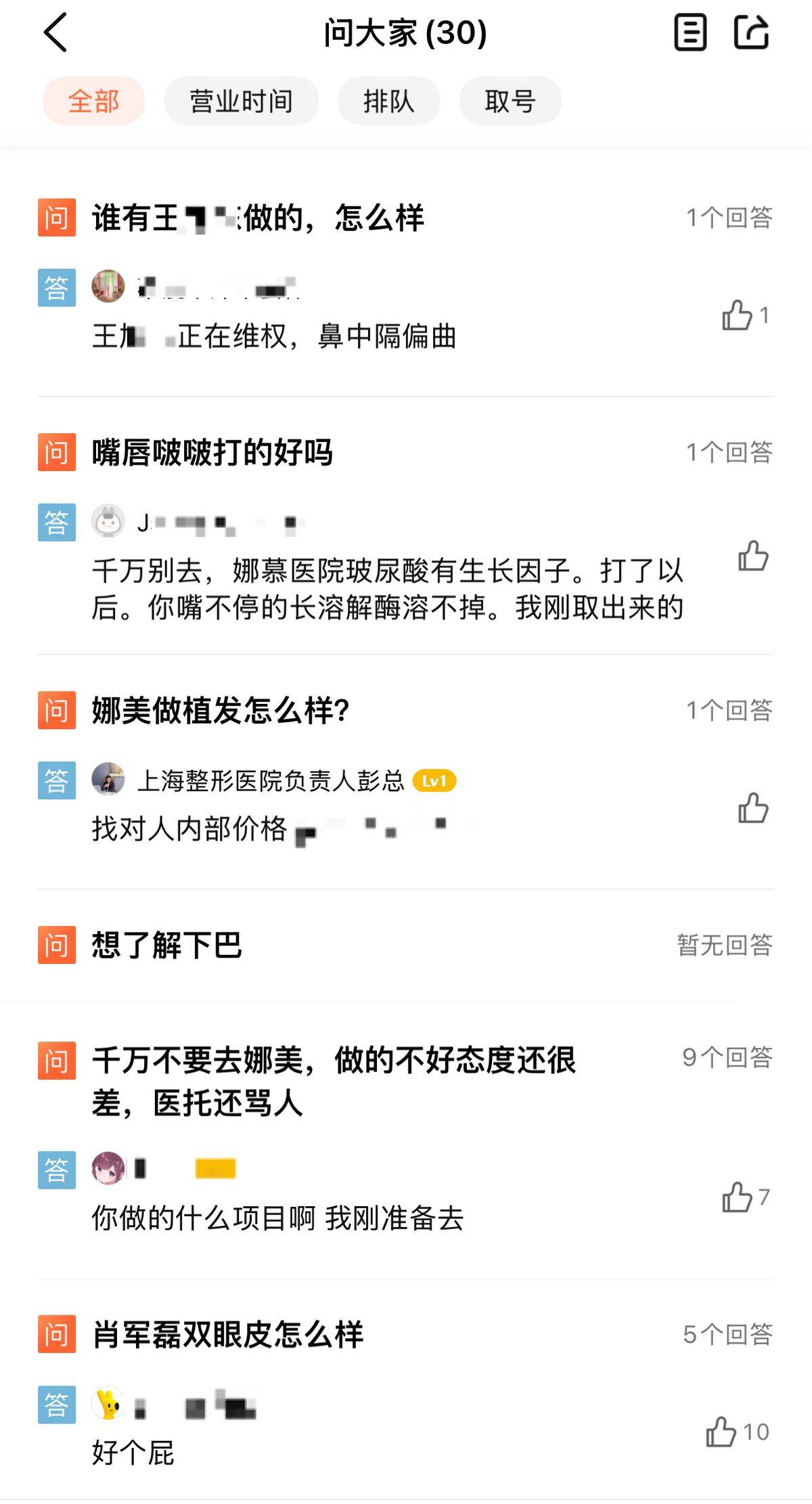 消费者们对该机构的评价竟然出奇地统一,在对该机构问题及回复中,遍布大量劝退言论。由此可见,上海娜美医疗美容在消费者群体中已经口碑尽失。