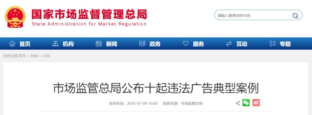 7月9日,市场监管总局公布十起违法广告典型案例。