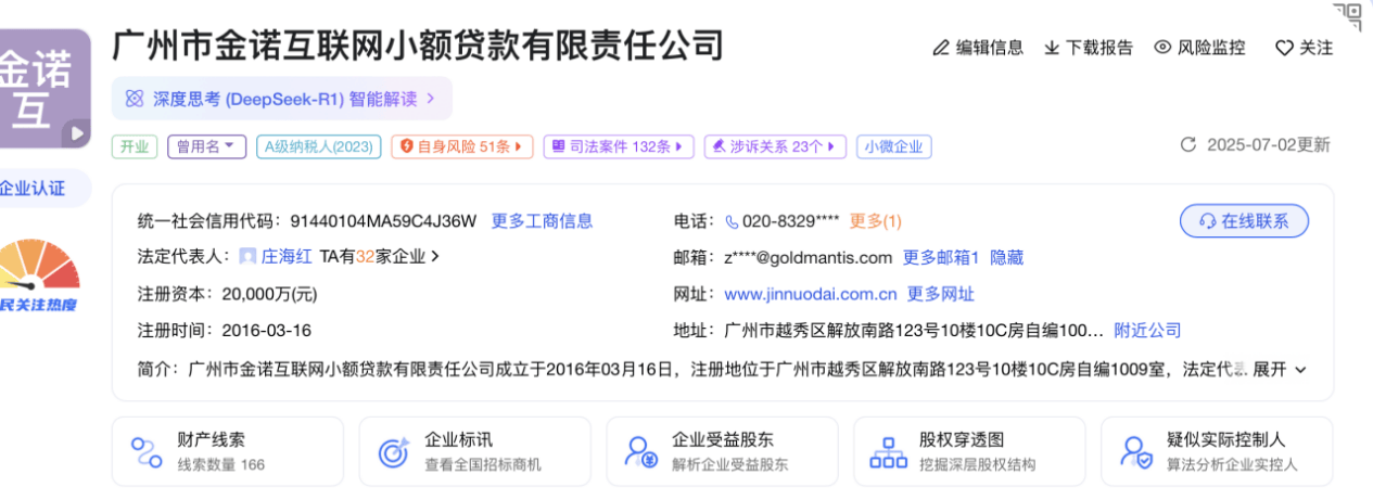 据悉,广州市金诺小额贷款有限责任公司成立于2016年,注册资本仅2亿元。而根据2020年出台的《网络小额贷款业务管理暂行办法(征求意见稿)》,经营网络小额贷款业务的小额贷款公司的注册资本不低于人民币10亿元,且为一次性实缴货币资本。