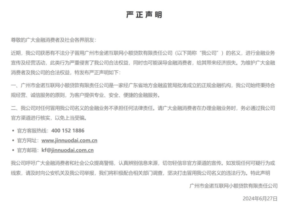 媒体曝光后,金诺小贷迅速发布声明称“被不法分子冒用名义”。但当时便有业内人士一针见血指出:“若真遭冒用,该贴的是报警回执而非声明。
