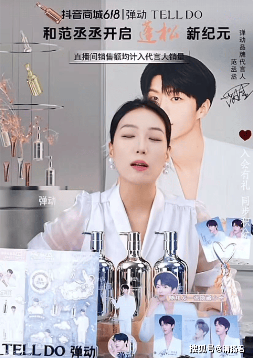 近期,年轻明星范丞丞代言的“弹动”品牌引发关注。清扬君快消品舆情分析中心在调查其他线索时,意外发现“弹动”抖音旗舰店的直播间背景中多次出现“弹动品牌代言人范丞丞”、“范丞丞倾情推荐”等宣传内容,直播间内也布满相关字样和海报。此外,直播间还标注“直播间销售额均计入代言人销量”的说明。