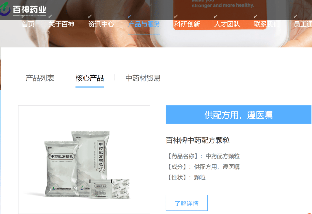 根据官网资料,百神药业是一家集中成药、中药配方颗粒、中药饮片研发、生产和销售于一体的现代化制药企业,也是江西省专业化小巨人企业,国家高新技术企业,中国医药工业(中药)企业百强榜企业。