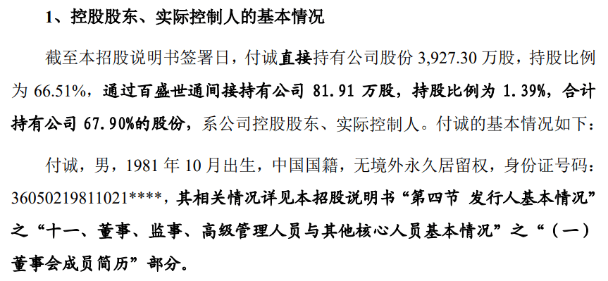 根据招股书,百神药业控股股东及实控人为付志高之子付诚。