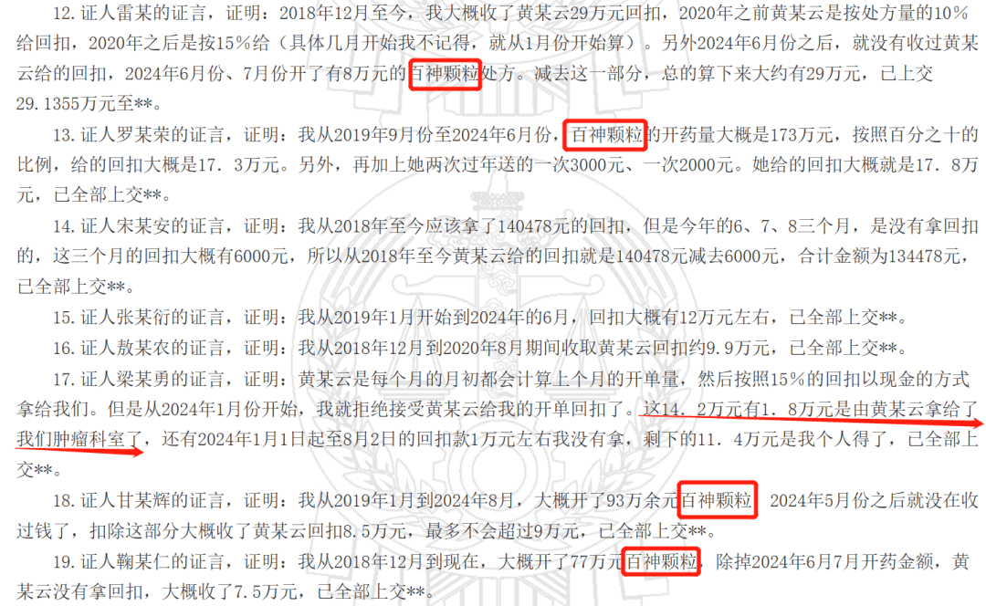 蔚来君注意到,百神颗粒隶属于江西百神药业,江西百神药业股份有限公司创始人正是付志高。这一名字恰好出现在了雷某根的证言中。