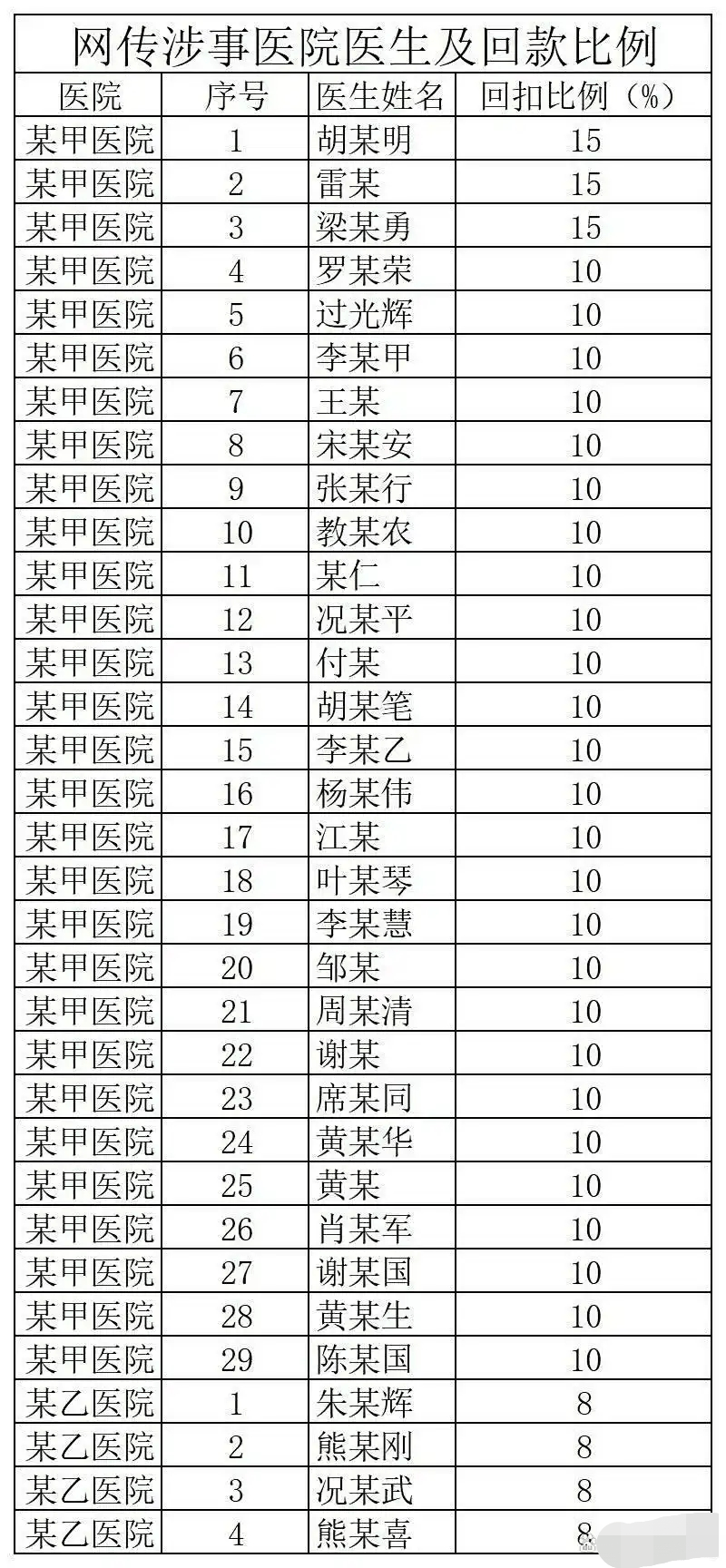 在黄某云证言中,涉及的医生名字也为33个。这份名单,网上已有媒体统计表格。