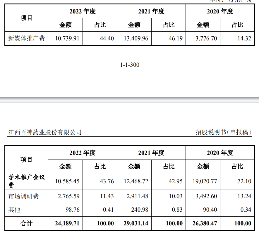 招股书显示,2020年至2022年,百神药业的营收为17.4亿,三年销售费用累计达到了9.12亿元,同期累计研发费用支出约0.51亿元,销售费用为当期研发费用的17.88倍。