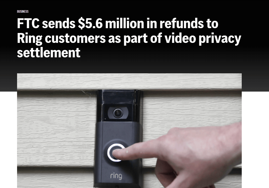 事实上,在全球范围内已有多起因智能硬件隐私泄露而引发的严重事件。美国亚马逊旗下的 Ring 门铃摄像头,就曾因内部员工与承包商擅自访问用户家庭视频,被美国联邦贸易委员会(FTC)指控侵犯隐私,并最终支付 560 万美元赔偿金,涉及十余万消费者。部分黑客还借此远程监控用户家中情况,甚至通过语音功能骚扰儿童,引发巨大恐慌。