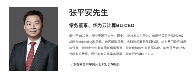值得注意的是,张平安担任华为消费者业务云服务总裁时,曾是华为常务董事、终端BG董事长余承东的下属。而如今从华为官网的董事会排名来看,掌舵云业务的张平安排在第六位,还在余承东之前。