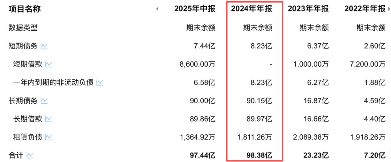 1、利息负担侵蚀利润:2024年债务总额达98.38亿元,但公司同期净利润仅2.01亿元,利息覆盖能力显著不足。