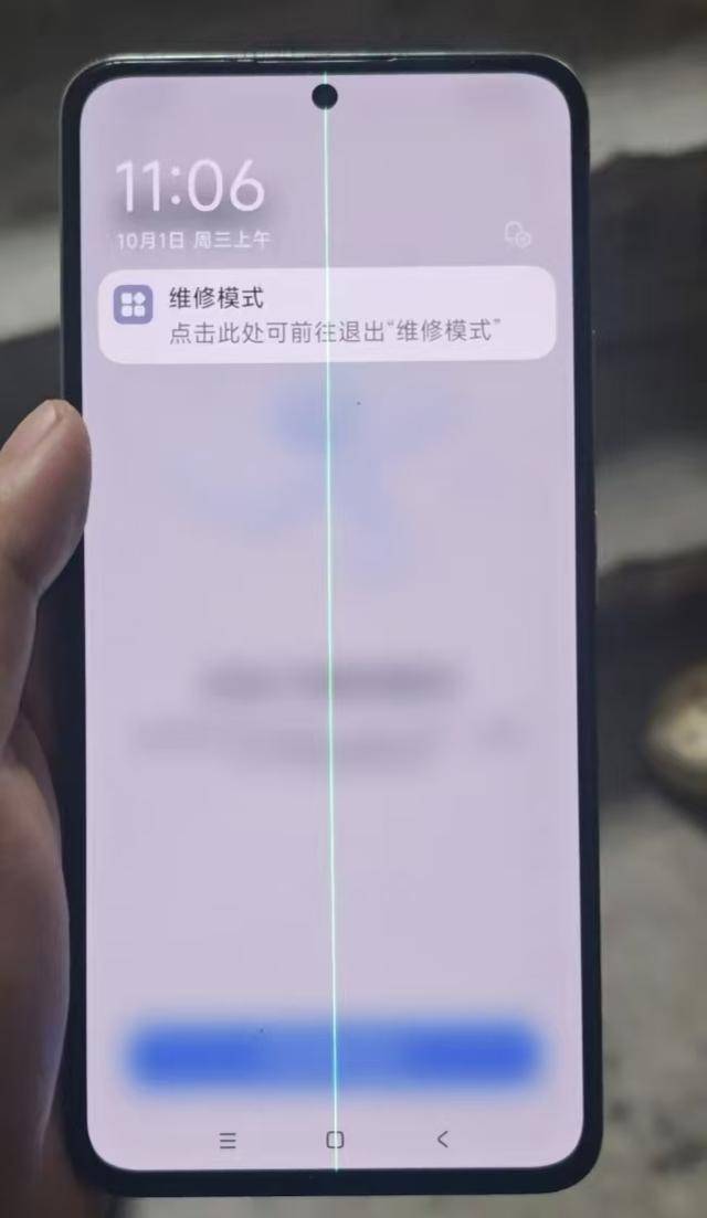 程先生称,今年9月30日,手机屏幕突然出现一条“绿线”。他提供的照片显示,其手机开机后,页面中间会出现一条绿色垂直线条。