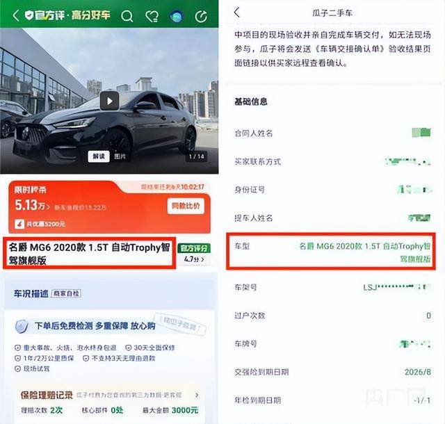 李先生说,2025年9月22日,他通过瓜子二手车平台,在武汉汉阳欧亚达广场门店支付全款52300元,购买了一辆2020款名爵MG6轿车。平台页面宣传、车辆信息介绍及电子合同上,均明确标注该车为“智驾旗舰版”。