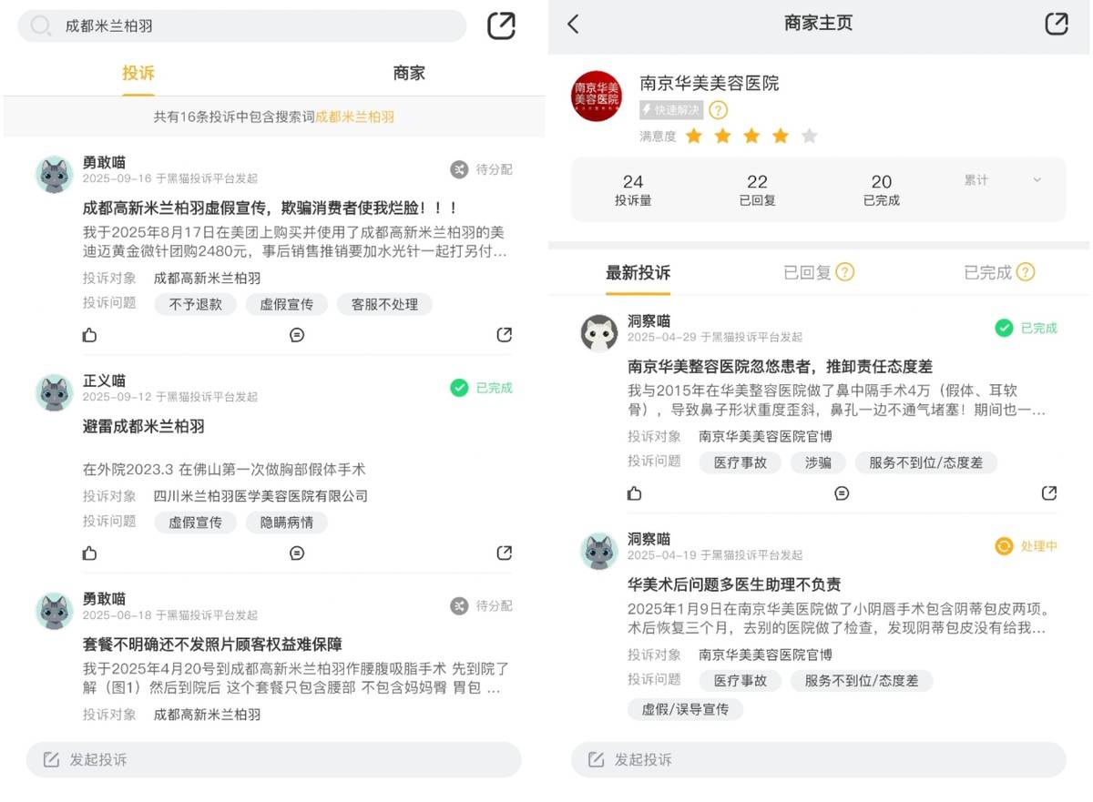 可以看到,大众点评上的消费者对该机构的医疗水平颇有微词。实际上,黑猫投诉等平台中,对于该机构的投诉也远非个例。