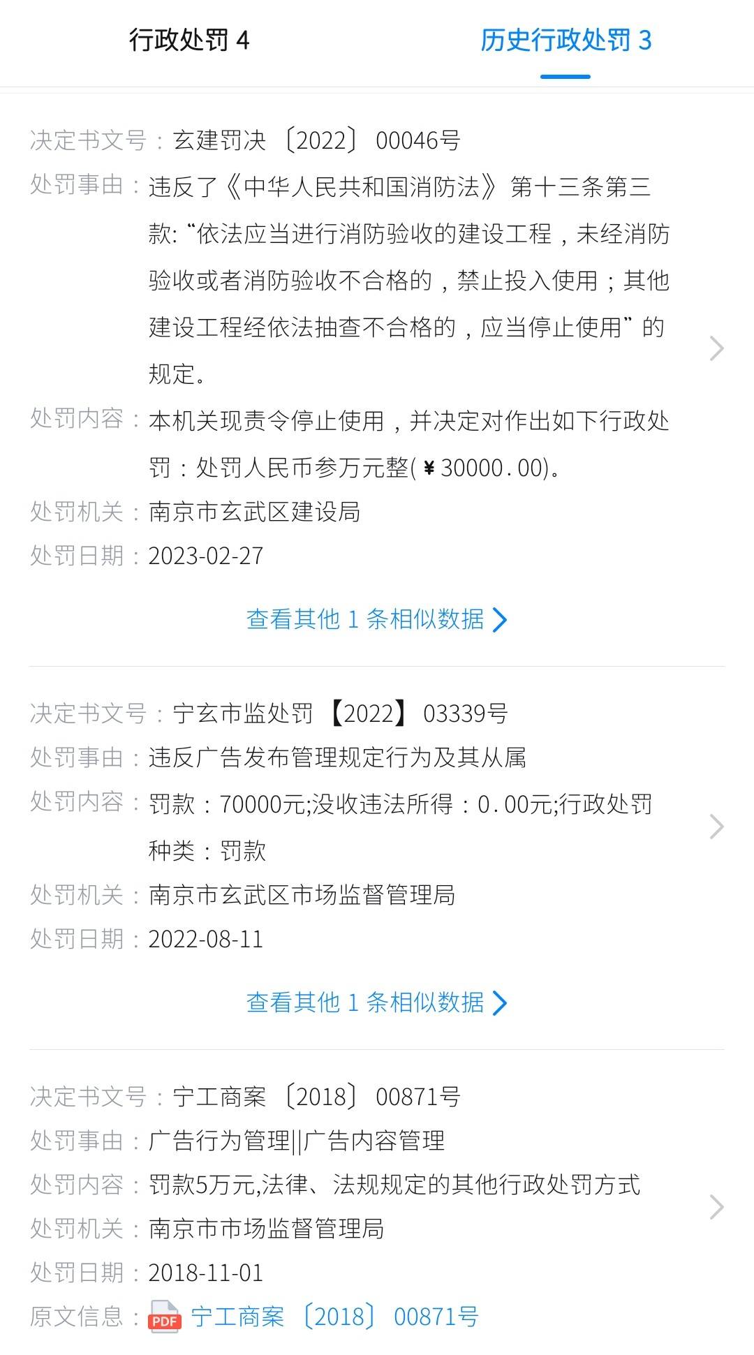 头部机构的历年罚单