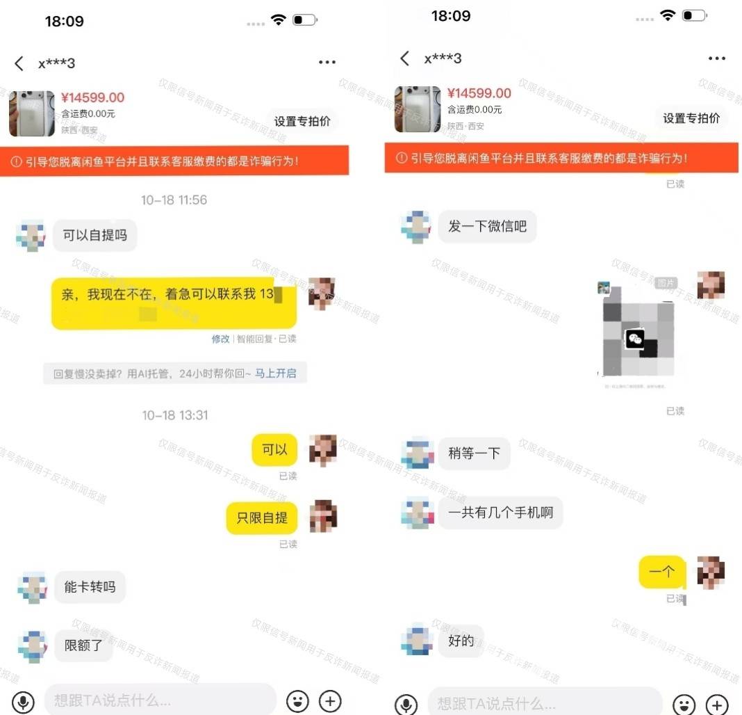 今年10月,屈女士在闲鱼上挂售了一台全新未拆封的iPhone 17 Pro Max(1TB),挂上不久就有人主动来问能不能自提。“自提能当面验机,能避免邮寄的麻烦,我当然同意。”屈女士跟买家添加了微信,双方约好在屈女士居住的小区门口见面。交易前,对方以“微信支付被限额”为由,索要了她的银行卡号,称“家人会直接转账”。