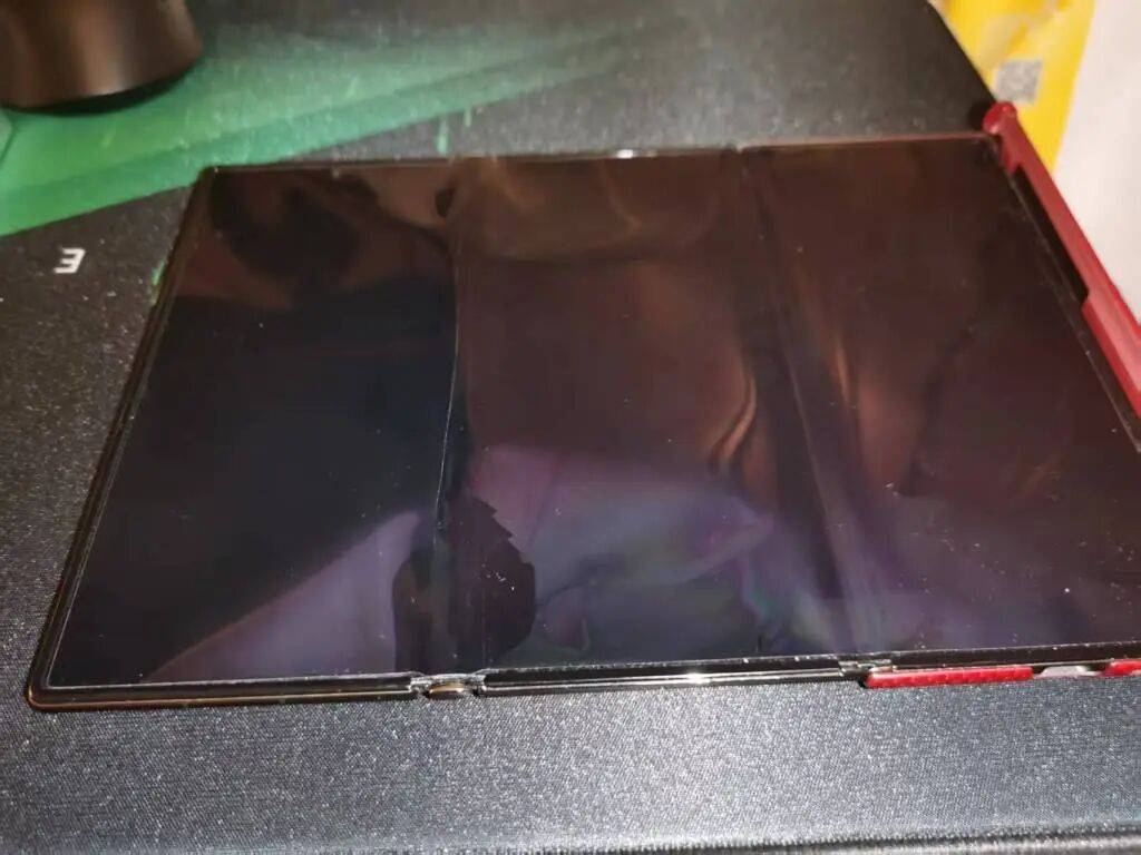 消费者屏幕第一折叠处出现条纹状,同时还出现柔性屏幕隆起。