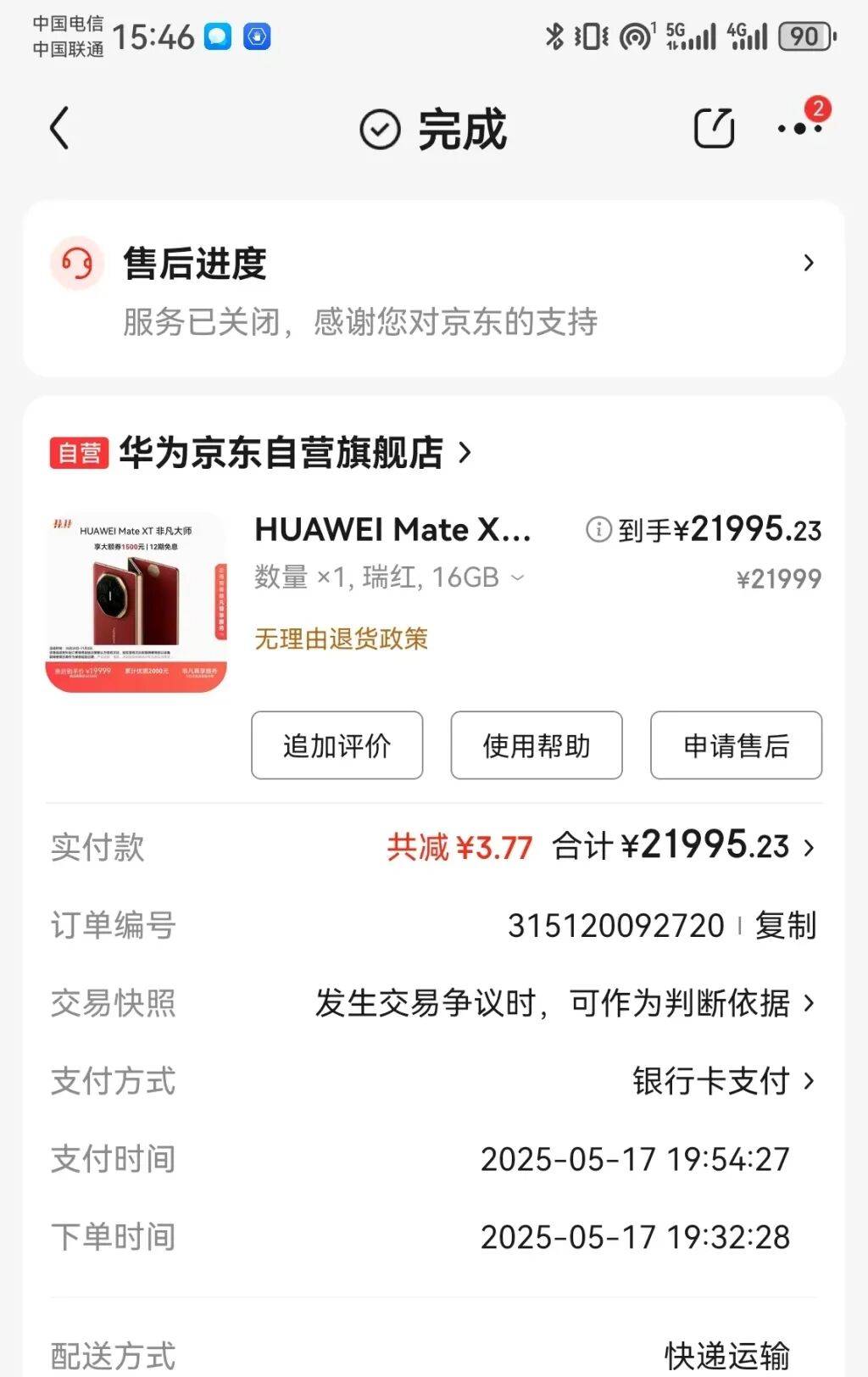 据瞿先生介绍,今年5月17日他在京东商城花费21999元购买了一台华为XT三折叠手机。他说,新手机次日便顺利送达,起初使用一切正常,但到8月19日,手机屏幕上突然出现竖条状色带。