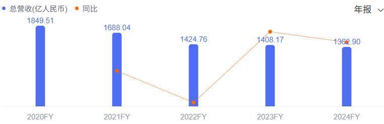 但随着宏观经济增速放缓,银行业净息差普遍承压,民生银行近年来的业绩增长节奏已大不如前。2020年至2024年,民生银行收入分别为1849.51亿元、1688.04亿元、1424.76亿元、1408.17亿元与1362.90亿元,连续四年下滑。