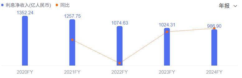 从收入结构的角度切入可知,作为民生银行主营业务收入来源的利息净收入规模呈持续走低态势,由2020年的1352.24亿元降至2024年的986.90亿元,手续费及佣金收入亦由276.64亿元降至182.45亿元。