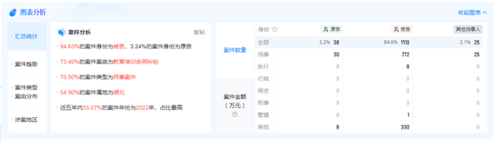 除“电诉宝”外,黑猫投诉平台数据也揭示了尚德机构在其他方面存在较多消费争议,其中有关“退费”的投诉数量超过14400条,其余用户投诉主要集中在售后服务、网络欺诈、虚假促销等方面。