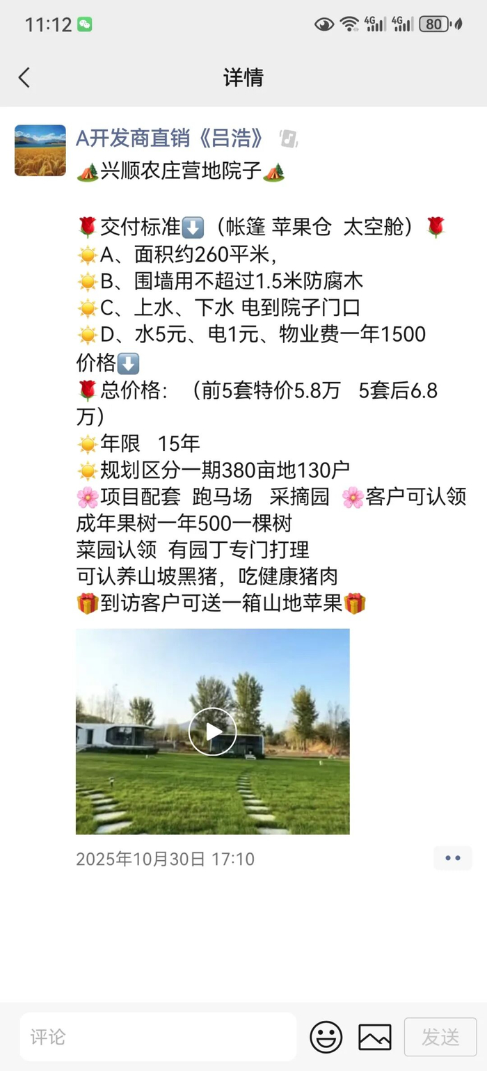 为吸引客户,徐冬还在微信朋友圈发布“首推5套特价院子,每套仅售5.8万元”的消息,暗示“欲购从速”。但这一模式被质疑为“以租代售”——通过长期租赁变相销售不动产,规避商品房监管政策。