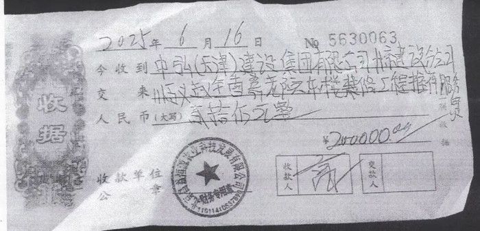 北京劲博建筑工程公司保证金收据(受访者供图)