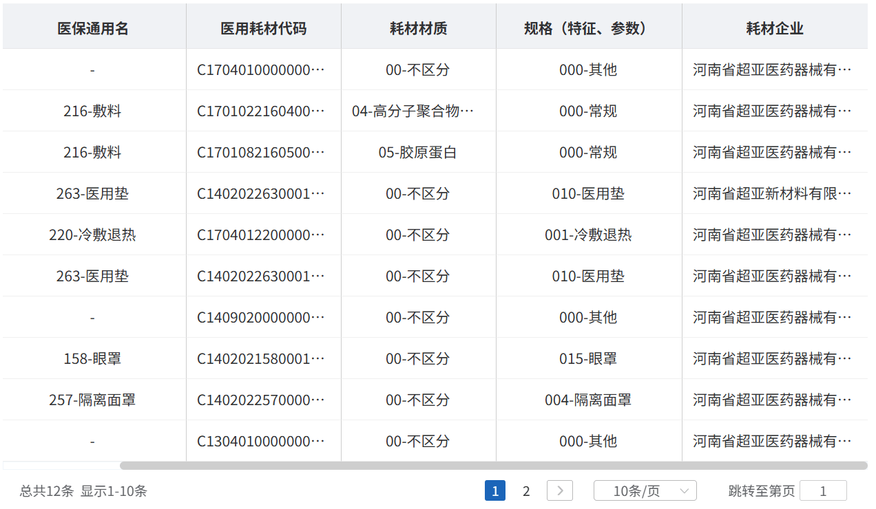 查询国家医保局备案信息可知,超亚医药旗下的超亚新材料、超亚器械等公司已完成共12款第一类医疗器械产品的备案,涵盖医用垫、敷料、眼罩等多个类别。