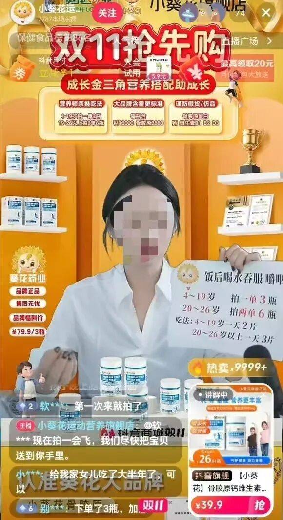 近期,葵花药业(002737.SZ)因其产品“骨胶原钙维生素D”在直播中被使用宣传话术隐晦暗示存在“增高”功效而引起社会的广泛关注。今年“双十一”期间,多个打着葵花药业官方名义的直播间里,主播们都在销售一种名为“骨胶原钙维生素D”的产品,主播使用话术暗示该产品能让成年人可以“补救”身高,适用人群涵盖20至26岁。