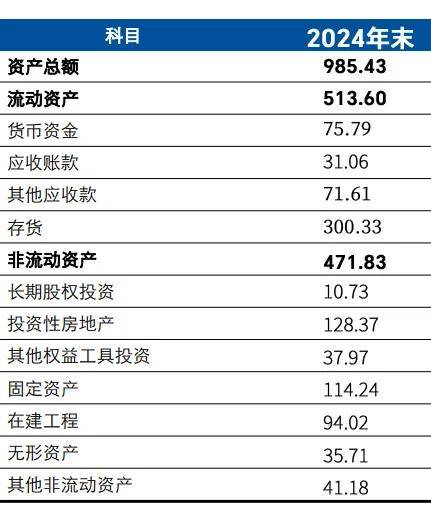 2024年公司总资产985.43亿元,流动资产513.6亿元,非流动资产资产471.83亿元,结构由以非流动资产为主转为以流动资产为主。流动资产中变现能力较弱的存货和应收类款项占比较高,资产流动性较弱。公司流动资产主要由货币资金、应收账款、其他应收款和存货等构成。2024年公司货币资金75.79亿元,有所波动,以银行存款为主。2023 年末,公司货币资金中受限资金为48.37 亿元,主要为用于担保的定期存款、银行承兑汇票保证金和保函保证金,受限资金占比58.69%,受限比例较高。公司应收账款31.06亿元,主要为应收工程款和保里款,近年来有所波动。公司其他应收款71.61亿元,主要为对临沂市国有企业单位和政府部门的往来款。公司存货300.33亿元,保持增长,是公司资产的最主要构成部分。公司存货主要包括基础设施和棚户区改造项目开发成本、房地产项目开发成本以及库存商品、原材料等。