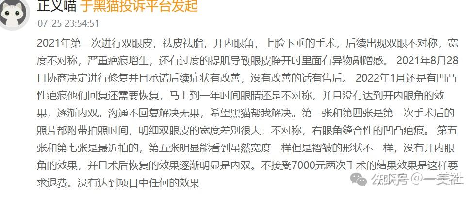 此类投诉揭示了壹加壹在手术质量控制和售后服务体系上的缺陷。消费者反映,一旦出现问题,医院往往采取拖延、推诿的态度,而非积极解决问题。
